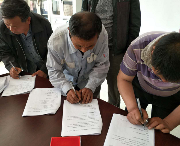 在縣百企辦逯亞森主任、大河屯鎮(zhèn)黨委張珀副書記、申沖村申慶振主任的見證下,各方與公司共同簽署了相關(guān)協(xié)議,正式將本批物資轉(zhuǎn)交給了申沖村委。