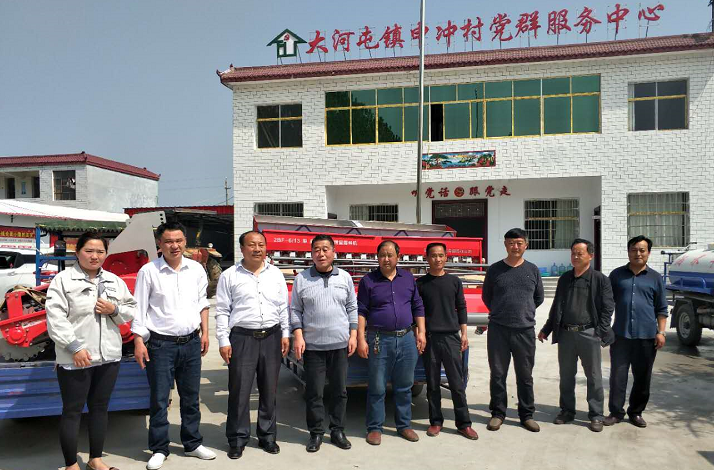 協(xié)議簽署好后,公司郭經(jīng)理、公司工會主席耿莉莉同縣百企辦逯亞森主任、大河屯鎮(zhèn)張珀副書記、申沖村申主任以及申沖村拖拉機手合影。
