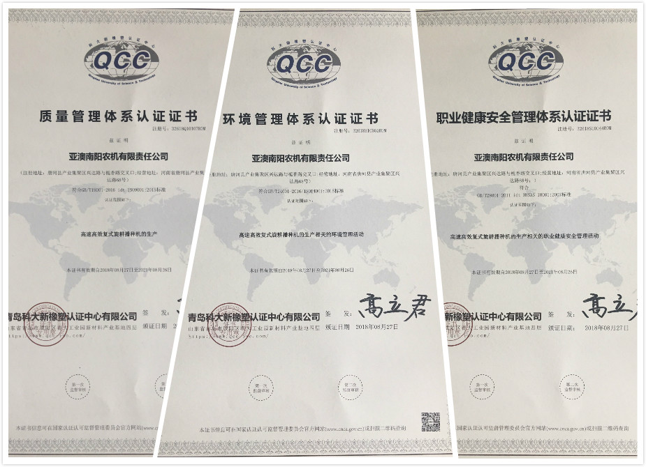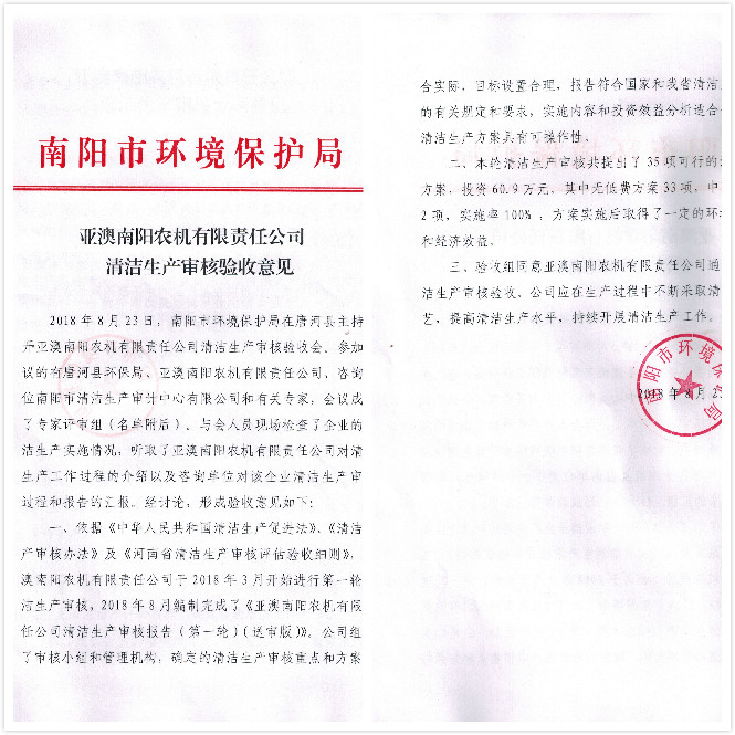 亞澳農(nóng)機通過三體系認證及清潔生產(chǎn)
