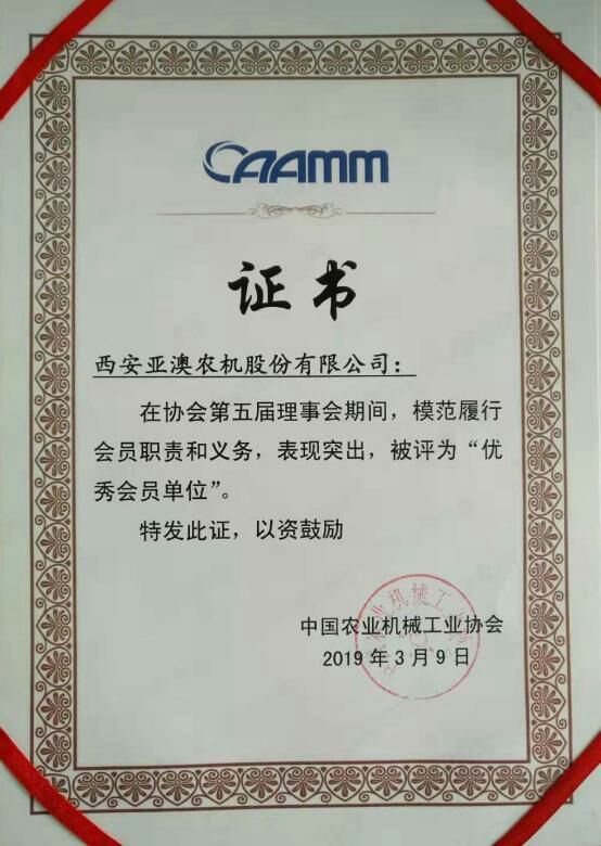 2019年3月9日,中國農業(yè)機械工業(yè)協(xié)會第六屆會員代表大會在鄭州國際會展中心召開,包括亞澳農機在內的來自協(xié)會會員單位的200余名代表參加了會議。