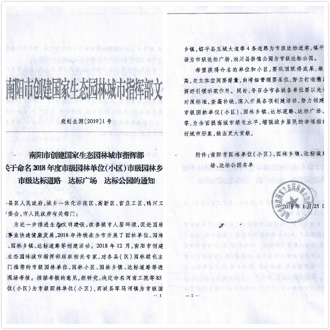 此次我公司喜獲 “南陽市園林式單位”的榮譽(yù)稱號,是市級主管部門對我公司優(yōu)美的綠色生態(tài)環(huán)境和園林綠化建設(shè)維護(hù)工作的高度肯定。我們會以此為新起點(diǎn),不斷加強(qiáng)生態(tài)環(huán)境建設(shè)和綠化養(yǎng)護(hù)管理工作,使廠區(qū)綠化特色更加顯現(xiàn),廠區(qū)綠化品位更上檔次,打造出更加優(yōu)美的生態(tài)園林廠區(qū)環(huán)境,為“國家綠色工廠”做好基礎(chǔ)。