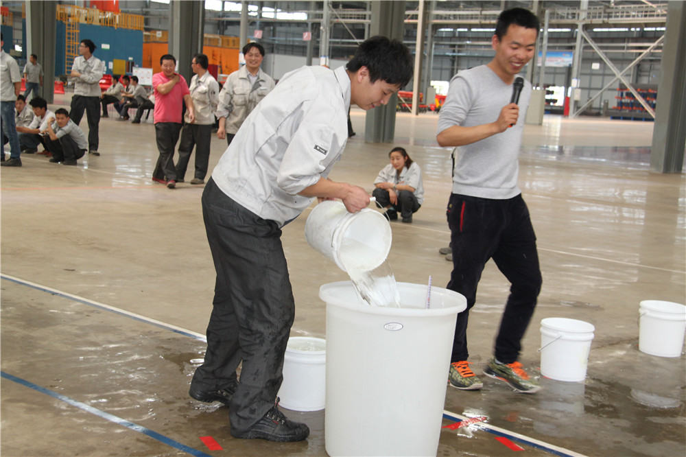 下午13:30在運(yùn)動(dòng)場(chǎng)出現(xiàn)了擺放有序的水桶,這是我們的第二項(xiàng)活動(dòng):精益運(yùn)輸大接力,取水點(diǎn)的距離分別大于等于10米,每個(gè)桶分別裝滿10L水,每組隊(duì)員是五個(gè)人,要在120秒內(nèi)完成大桶水量的收集,超過(guò)120秒的隊(duì)員淘汰出局,在規(guī)定的時(shí)間內(nèi),水量收集多者獲勝,抽簽決定出場(chǎng)順序,這項(xiàng)活動(dòng)是讓員工明白精益化生產(chǎn)體系的精髓所在之處;減少過(guò)程浪費(fèi),實(shí)現(xiàn)低成本的快速交付,滿足客戶的同時(shí),做到細(xì)節(jié)控制,提升產(chǎn)品使用價(jià)值,提升公司盈利空間。比賽開(kāi)始了只見(jiàn)隊(duì)員雙手提起20L的水往下一站的隊(duì)友那里送,中間會(huì)有灑水會(huì)很累,但是每個(gè)人都為了自己隊(duì)伍的榮譽(yù)拼盡全力向終點(diǎn)奔去,旁邊的隊(duì)友為他們加油、吶喊,最終自焊獲得第一名。